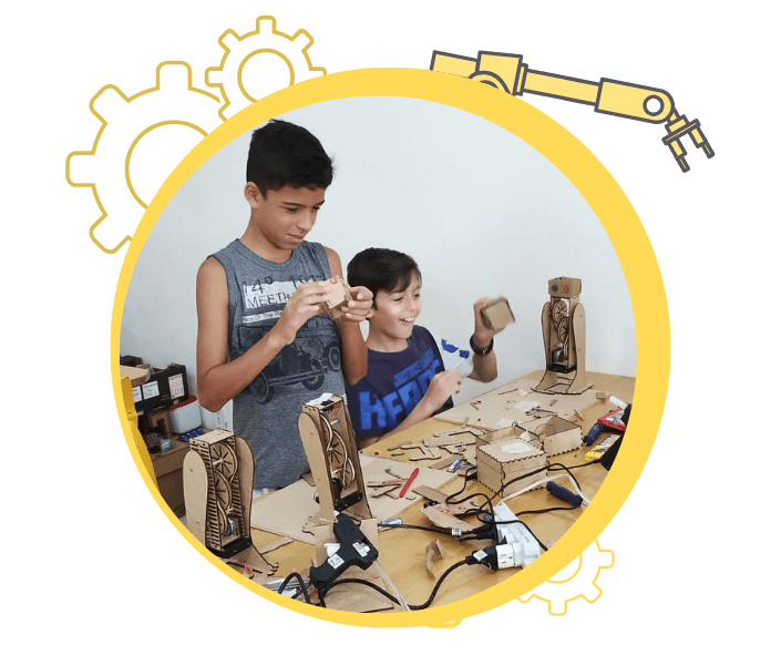 No processo de montagem do robô os makers tem a oportunidade de tocar, manipular, experimentar materiais, ferramentas reais, desenvolvendo a coordenação motora, noções de espaço e na etapa de programação terão a oportunidade de desenvolver raciocínio lógico.
